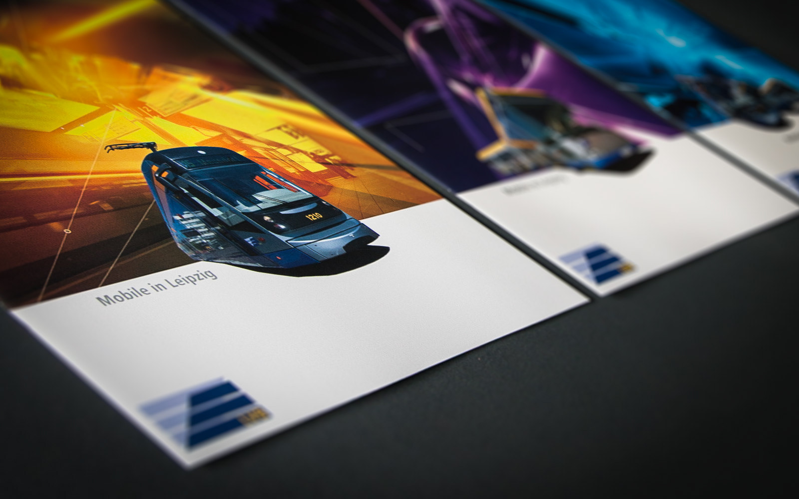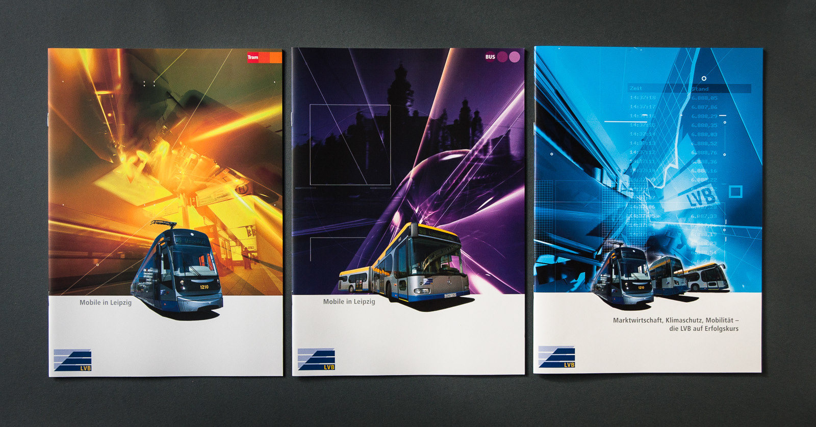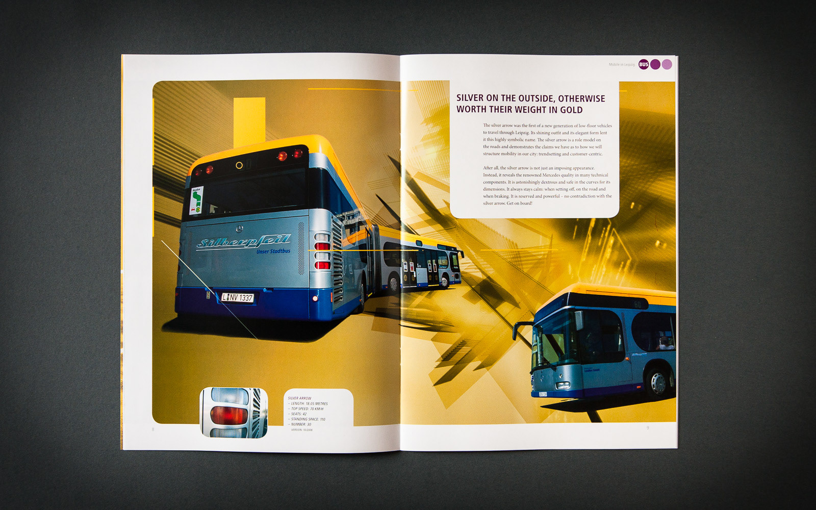 Einblick in die Leipziger Verkehrsbetriebe – Schrille Fotografie, Composing und Layout ergeben ein imposantes Portfolio des öffentlichen Verkehrs. (entstanden 2007 für die HOFFMANNSCHAFT - Agentur für Werbung)